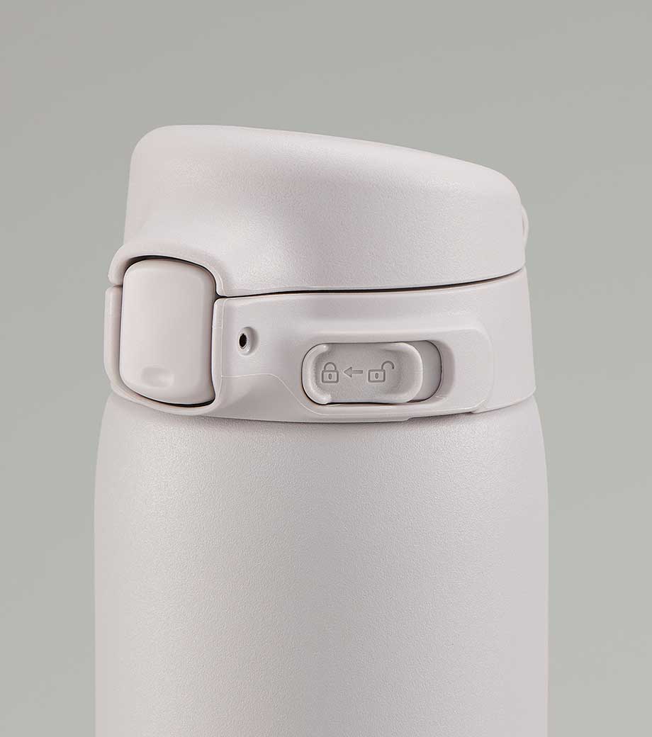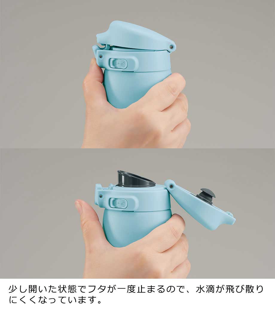 氷がらくらく入る広めの口径で、夏場は冷たい飲み物を楽しめます。飲み口はワンタッチで開く構造になっていて、簡単に飲むことが出来ます。フタにはロック機能付きで、カバンの中で中身がこぼれる心配がありません。