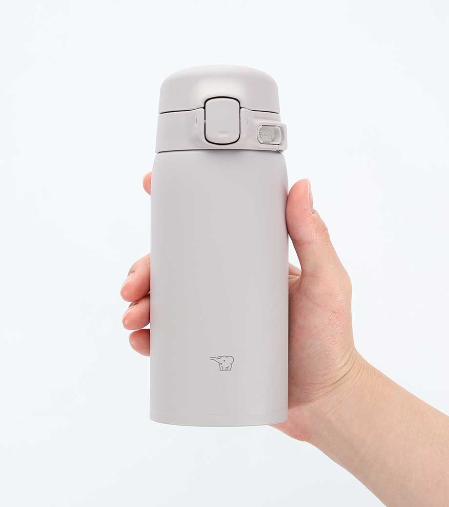 象印独自の「サーモリング構造」で高い保温・保冷力を誇る真空ステンレスボトルです。ワンタッチで開閉できるキャップは、栓とパッキンが一体化したシームレスせん。パーツが少なく食洗機対応なので、とにかくお手入れが簡単です。ボトル内面は耐食性が高くサビに強い加工がされています。開閉ロック付きでキャップがしっかり閉まるのも嬉しいポイント。容量約360mlで、ランチバッグにもすっぽり収まるサイズ感です。