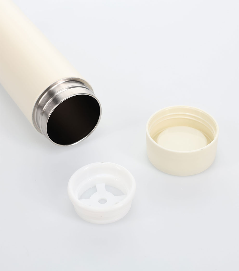 たっぷり飲める500mlのボトル。スポーツやレジャーシーンにピッタリな大容量タイプです。丈夫なステンレス鋼による真空二重構造が優れた保冷温効力を発揮します。氷が飛び出ない氷ストッパー付きなので勢いよくグイっと飲んでも大丈夫。樹脂素材の飲み口は優しい口当たりです。