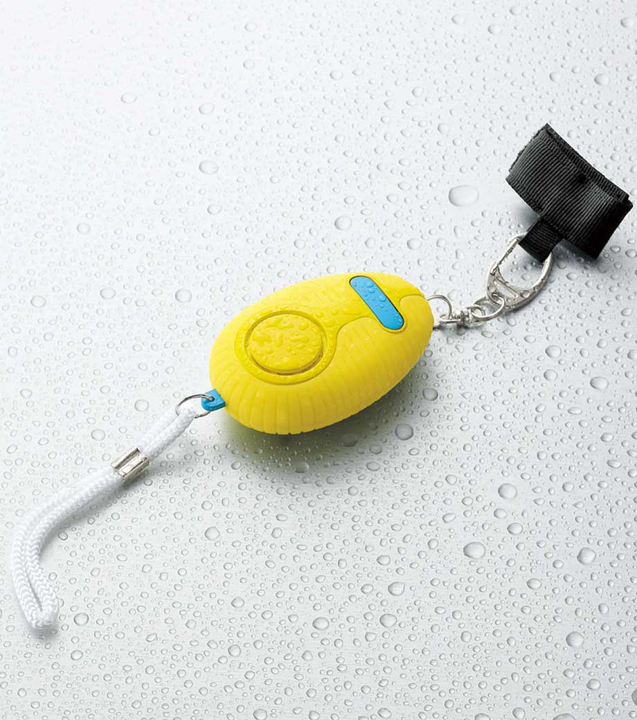 防犯ブザー付防滴ライトは、高輝度のLEDライトが1灯でも手元を明るく照らす、夜道やキャンプに安心な防犯ブザー付きのライトです。水にも強い防滴加工を施してあるので、アウトドアでも大活躍です。
