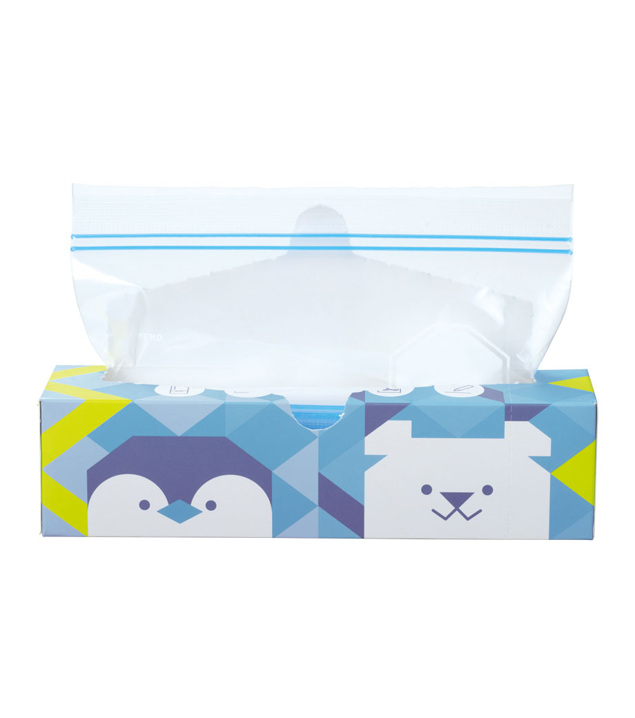 毎日の食材保存をちょっと楽しくしてくれるフリーザーバッグ。シロクマとペンギンが描かれた可愛いパッケージはキッチンに置くだけでほっこり癒されます。