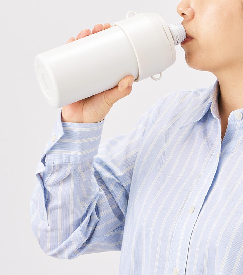 バッグの持ち手などに引っ掛けて使えるカラビナ付きだから、携帯にとっても便利。スポーツを楽しんだあとの水分補給や、レジャーやアウトドアに気軽に連れていってください。