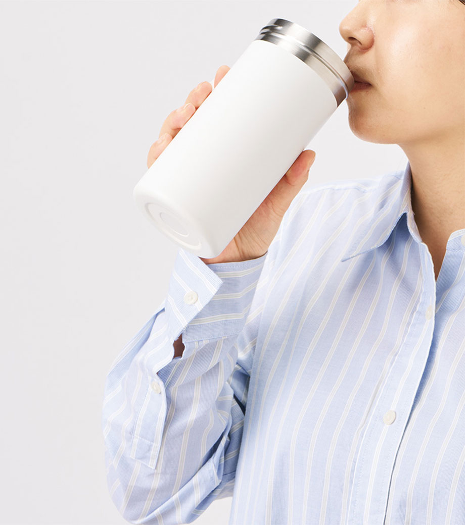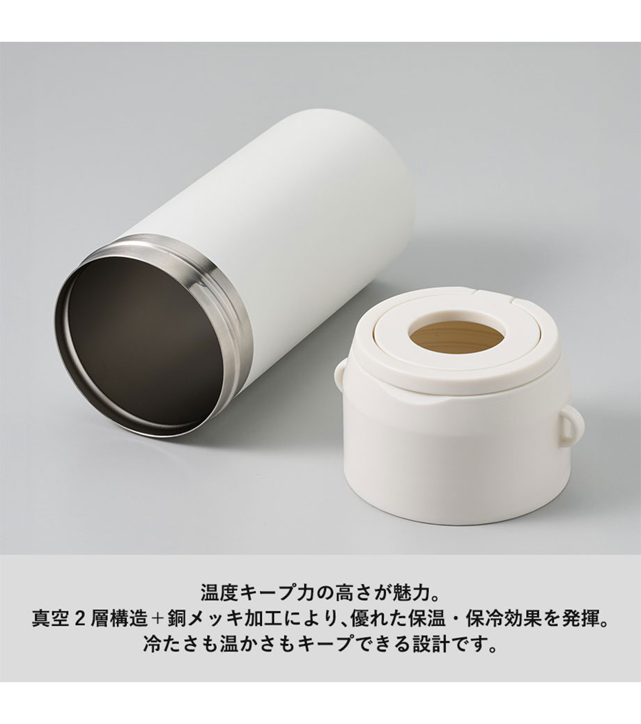 クリアな蓋付きで、蓋をしたまま飲める便利なマグカップ! 毎日のドリンクタイムを快適にする優れものです。真空二重構造により、保温・保冷効果が長持ちし飲み頃の温度をしっかりキープ。すっきりとしたフォルムとマットなカラーが、スタイリッシュな印象を与えます。