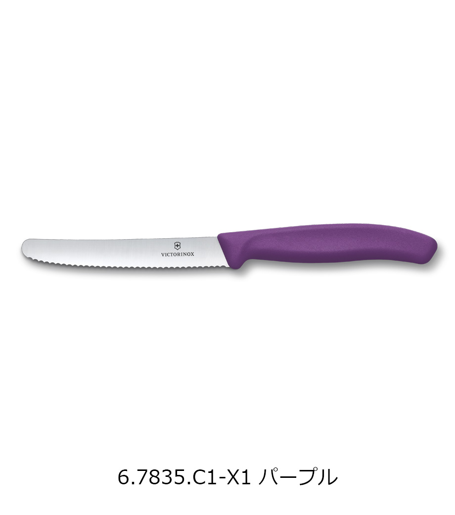 ビクトリノックス トマト&テーブルナイフは細かい波刃が食材をしっかり捉え、少しの力でスムーズにカットできます。持ち手は人間工学に基づいた、手になじむ滑りにくい形状。細身で軽量なのでキャンプなどのアウトドアにピッタリ!刃先が丸く、テーブルナイフやバターナイフとしても使えます。食洗機対応でお手入れもらくらく。