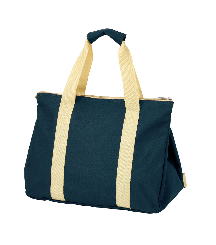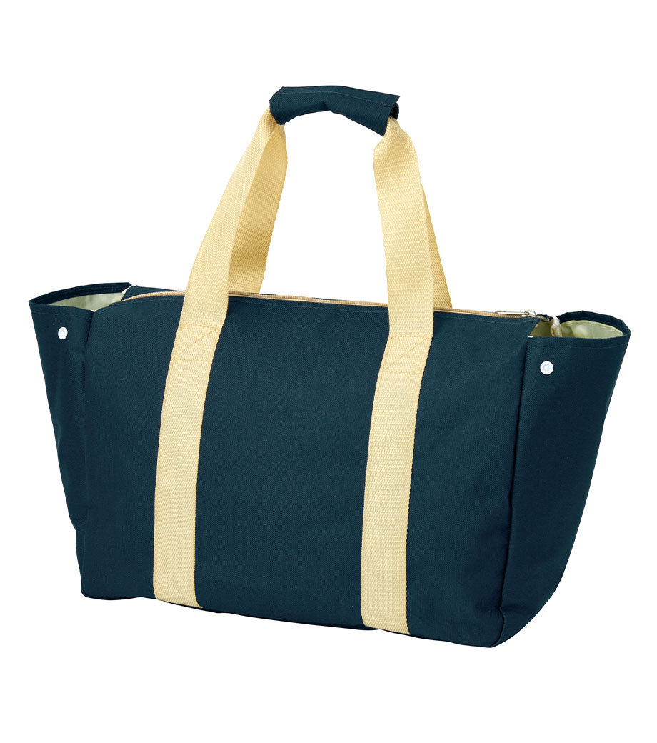 春夏のレジャーには、冷えた缶飲料やお弁当の傷み防止に保冷トートは必需品ですよね。500ml缶なら縦に6本、食品用容器なら2〜3個積み重ねてファスナーが閉められる手頃なサイズです。コンパクトに折り畳めてバッグだけの持ち運びもラクラク。
