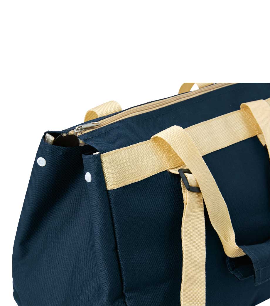 保冷ベーシックショルダートートは、2Lのペットボトルもらくらく入る大容量サイズのトートバッグ。長さを変えられるショルダーベルト付きで、斜めがけにすることができます。内側はアルミ蒸着タイプで保冷効果バッチリ。ファスナー仕様でしっかり口が閉じるので、中身が飛び出さず安心です。自転車でのお買い物や、荷物が多くなるレジャーシーンで大活躍間違いなし!