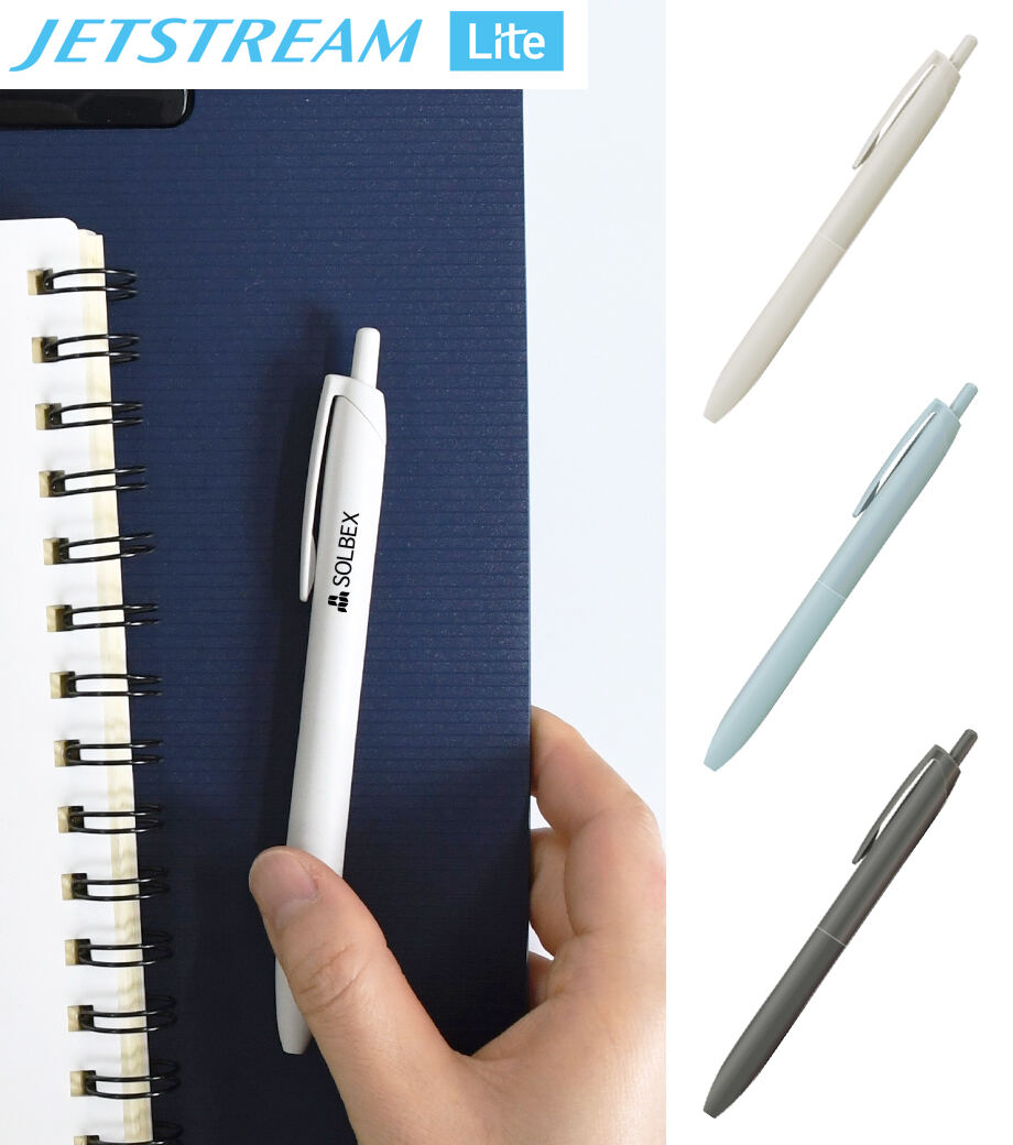 三菱鉛筆 ジェットストリーム白軸 0.5mmは、企業名やロゴを印刷するだけで宣伝効果の高いノベルティが製作できます。シンプルな白軸は1色でもフルカラーでも名入れが映えるので、大勢の人が来場する企業展示会やイベントでの配布にピッタリ!