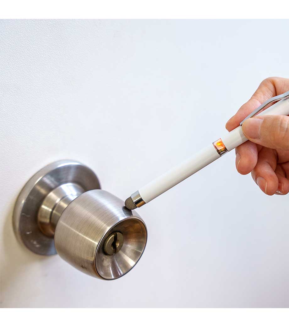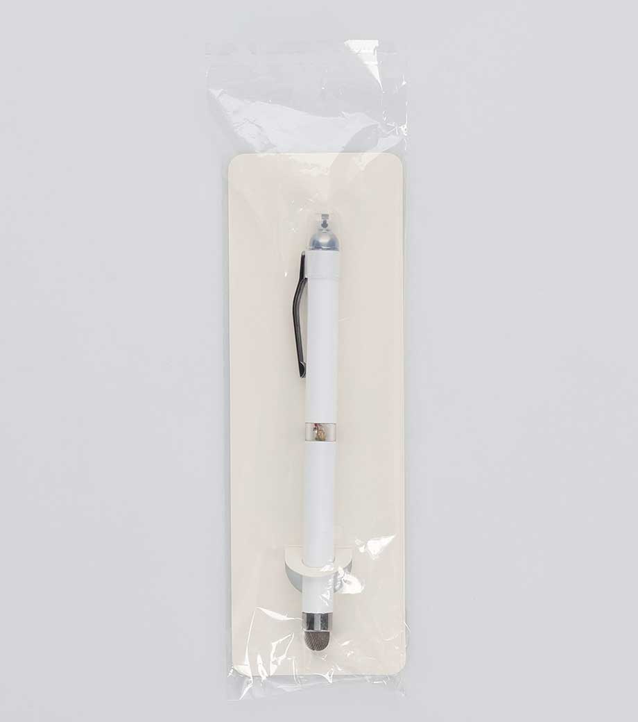 ボールペンとしての機能はもちろんのこと、ペンをしまえばスマホなどのタッチペンに。本体のスイッチをスライドさせればライトが点灯。