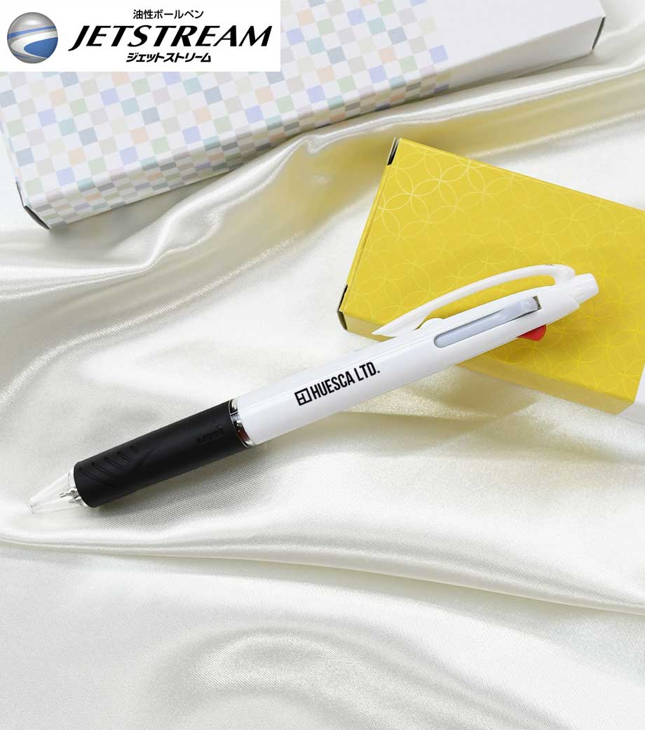 ギフト向けのジェットストリームやフリクションなど、高級な多機能ボールペンもラインアップ。企業名と周年数を1色で名入れしたオリジナルデザインは洗練された印象を与えます。専用箱やのし・包装の対応も可能です。