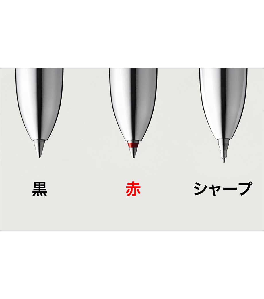 0.7mmの3色ボールペン(レッド・ブルー・ブラック)に、太さ違いの1.0mm黒色を1本追加。さらに、スマホやタブレットの操作に便利なタッチペン機能を搭載。素材には不要になったABSを再利用した、エコな多機能ペンです。