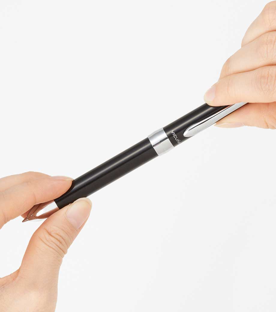 防災意識が高まる昨今、スーツの胸ポケットに忍ばせておけば、思わぬ災害時に助かる1本。電気が落ちた場合には、LEDライトが暗い足元を明るく照らしてくれます。喫茶店や映画館、コンサート会場など、暗い場所で筆記するときにも便利。
