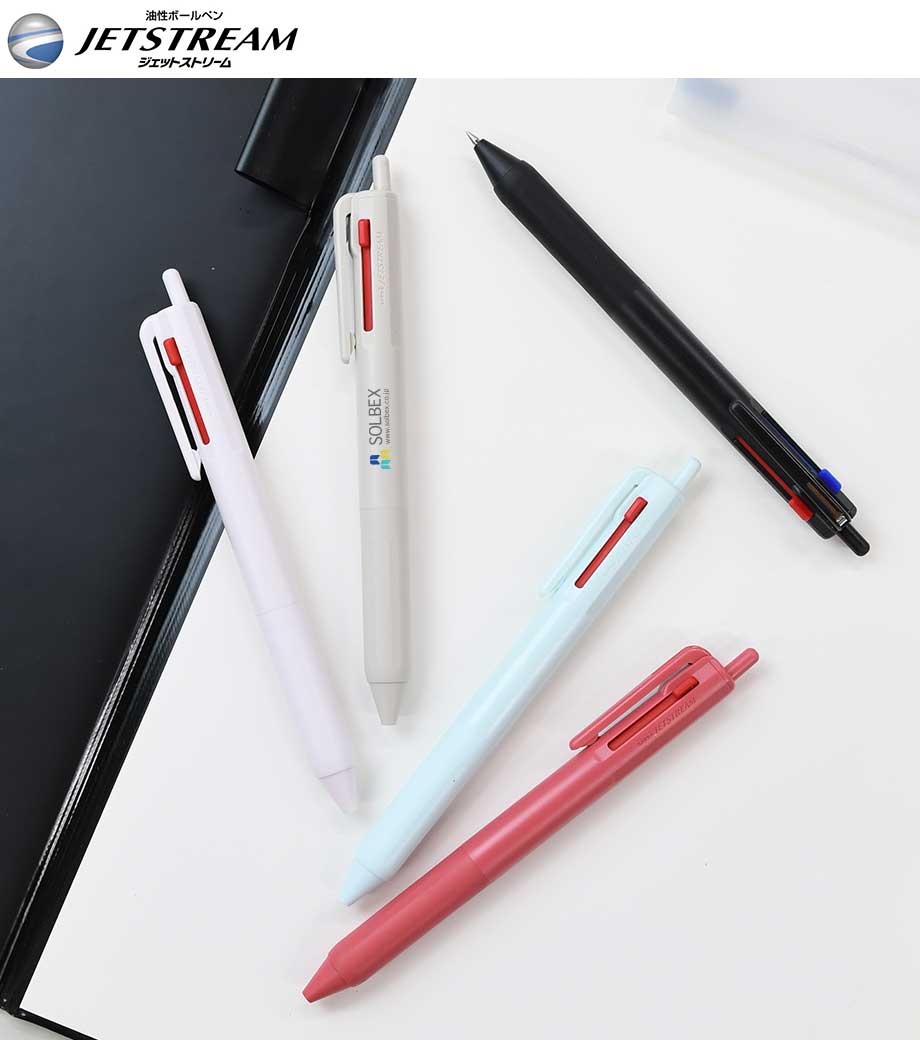 インクはエマルジョンインクを採用。乾きやすくかすれにくいのが特徴で、油性インクと水性インクを「7:3」で配合した"いいところどり"なインクです。1色印刷とフルカラー印刷(白軸のみ)可能。会社名や学校名を入れてオリジナルの3色ボールペンが作れます。
