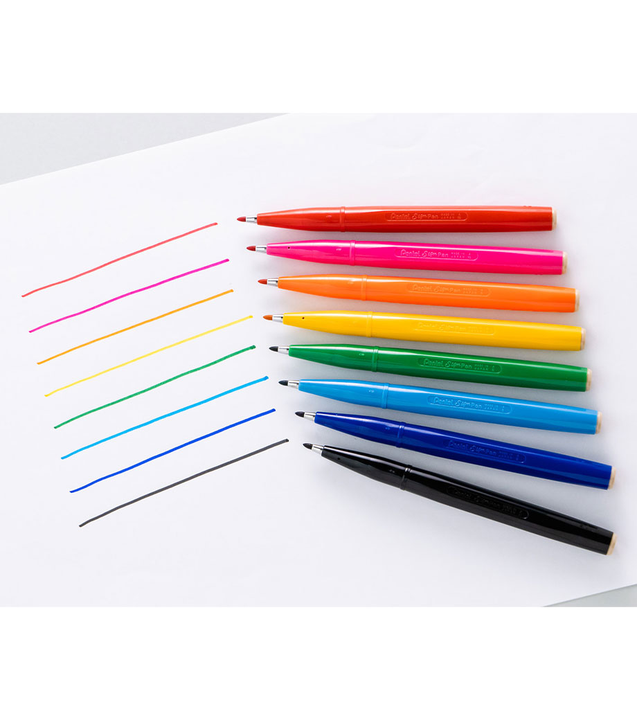 「ぺんてる サインペン」は高い性能とシンプルなデザインを持ち合わせた、半世紀を越えて現在も世界で使われる究極の水性ペンです。
