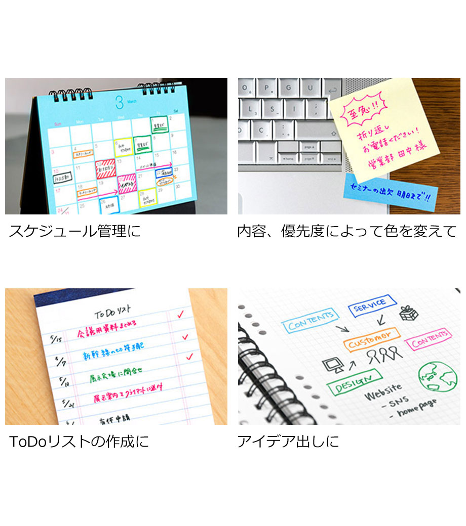 それもそのはず、なめらかなタッチの繊維ペン先で、ほどよい筆記線の幅は0.8ミリ。カレンダーのコマやノートの罫線でもはみ出ず、するすると気持ちの良い書き心地。スタッフも愛用する絶対おすすめ品です。