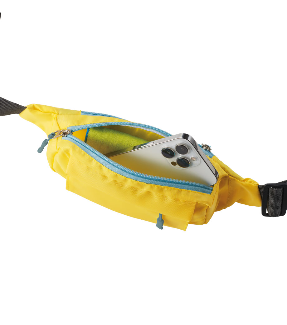 長さ調節できるベルトだから、腰・胸・背中掛けと好きな使い方ができるポーチです。鍵やスマホ、小銭など小物を持って外出する時に重宝します。普段使いはもちろん、愛犬のお散歩やご近所でのお買い物などにとっても便利です。ポケット3ヵ所は全てファスナー付き。大切な荷物を落とす心配がありません。
