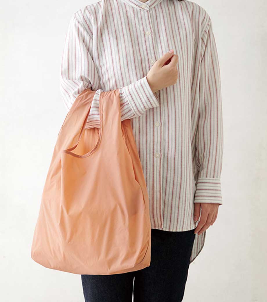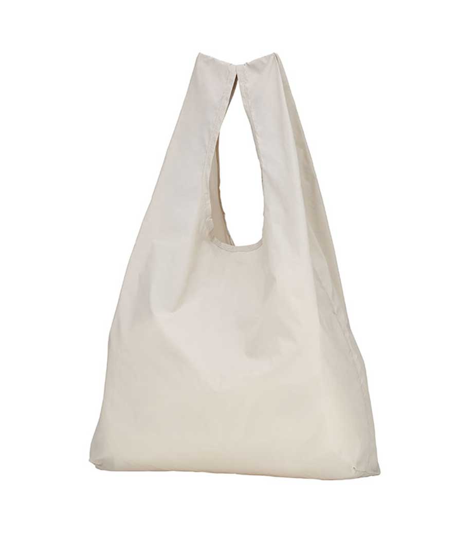 長めのハンドルで肩掛けできる、ちょっと大きめのマチなしコットンバッグ。お勤め帰りのお買い物や、急に荷物が増えたときも安心です。シンプルなデザインで軽いので、メインバッグとの2個持ちでもスマートに使えます。
