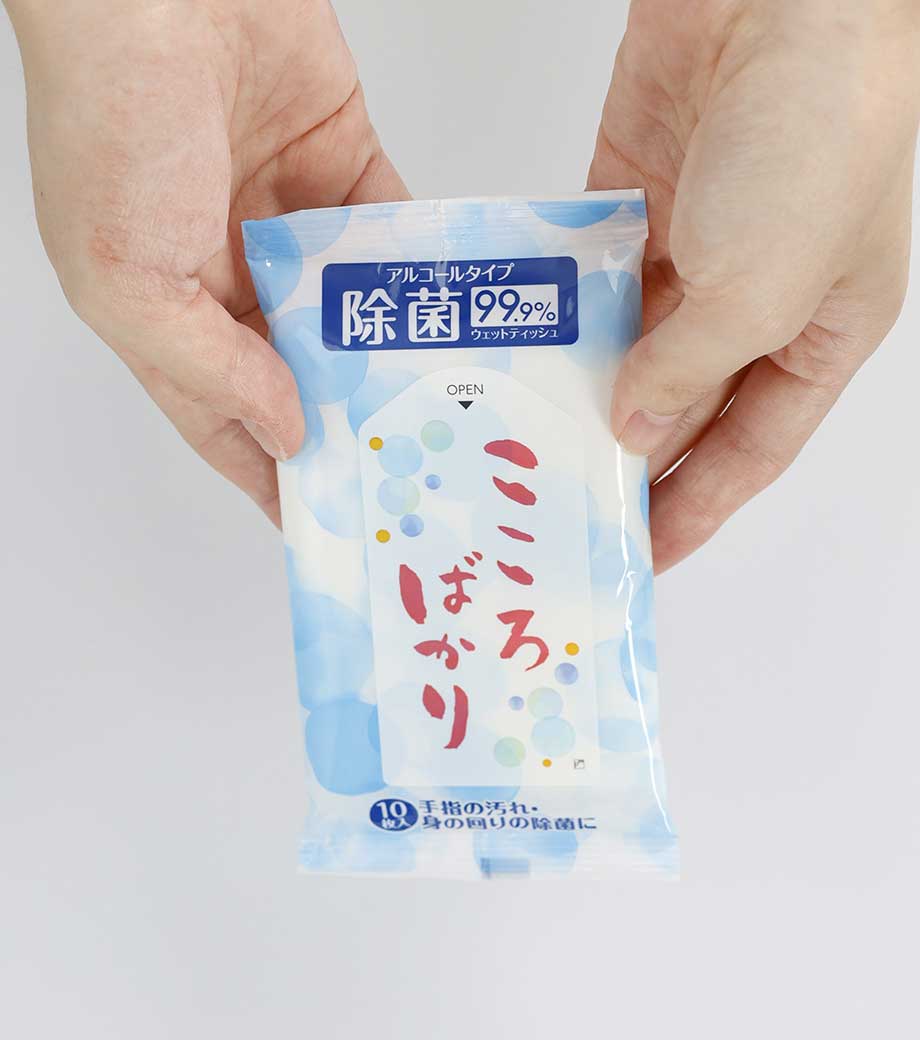 手軽に持ち運べるウェットティッシュは誰もがもらって嬉しいノベルティグッズに。