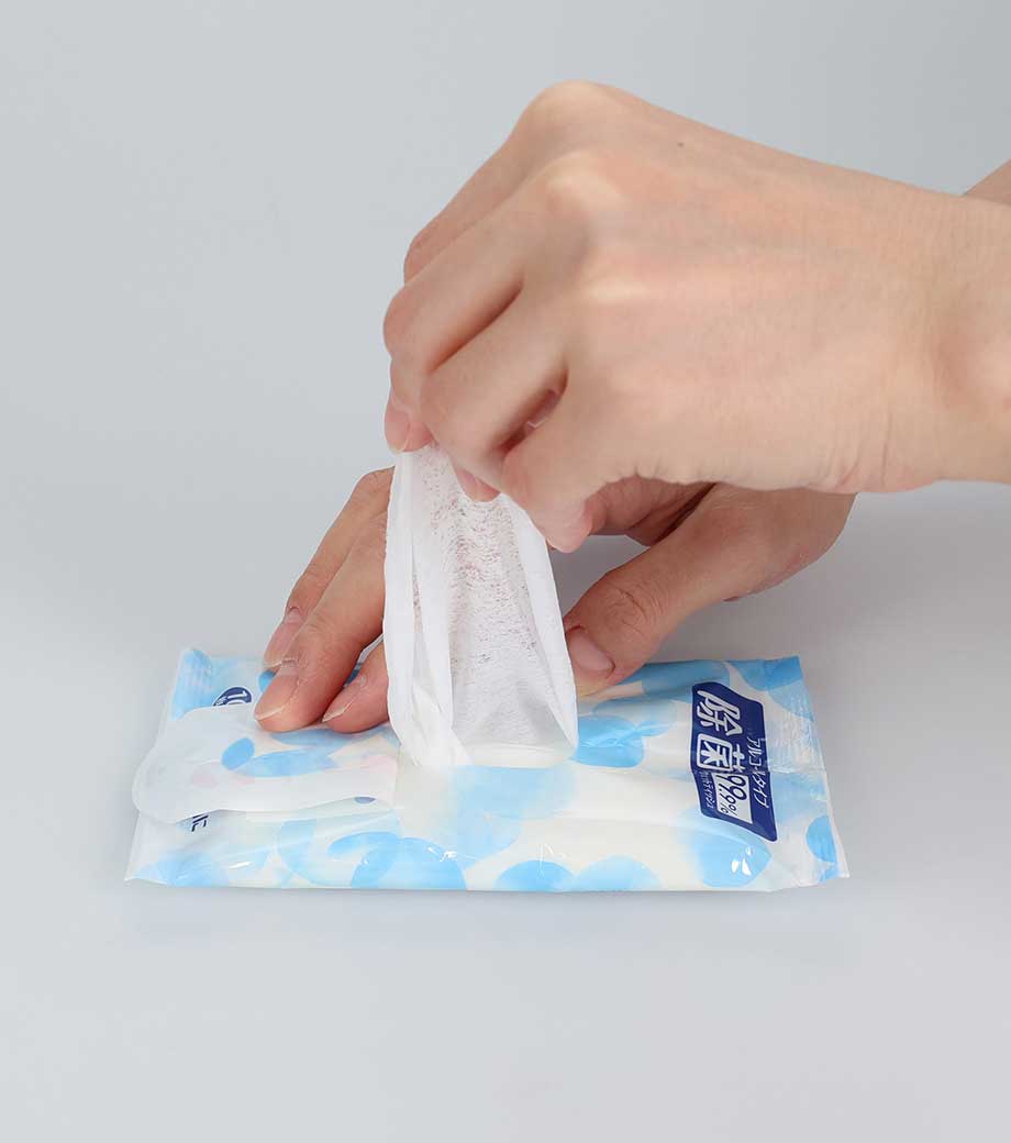 使い捨てで衛生的な除菌シートはいくつあっても嬉しいもの。渡す側ももらう側も嬉しい、まさにノベルティ向けのアイテムですね。営業配布用からキャンペーン、来店特典など幅広い用途におすすめです。