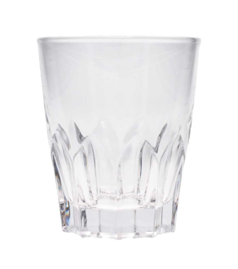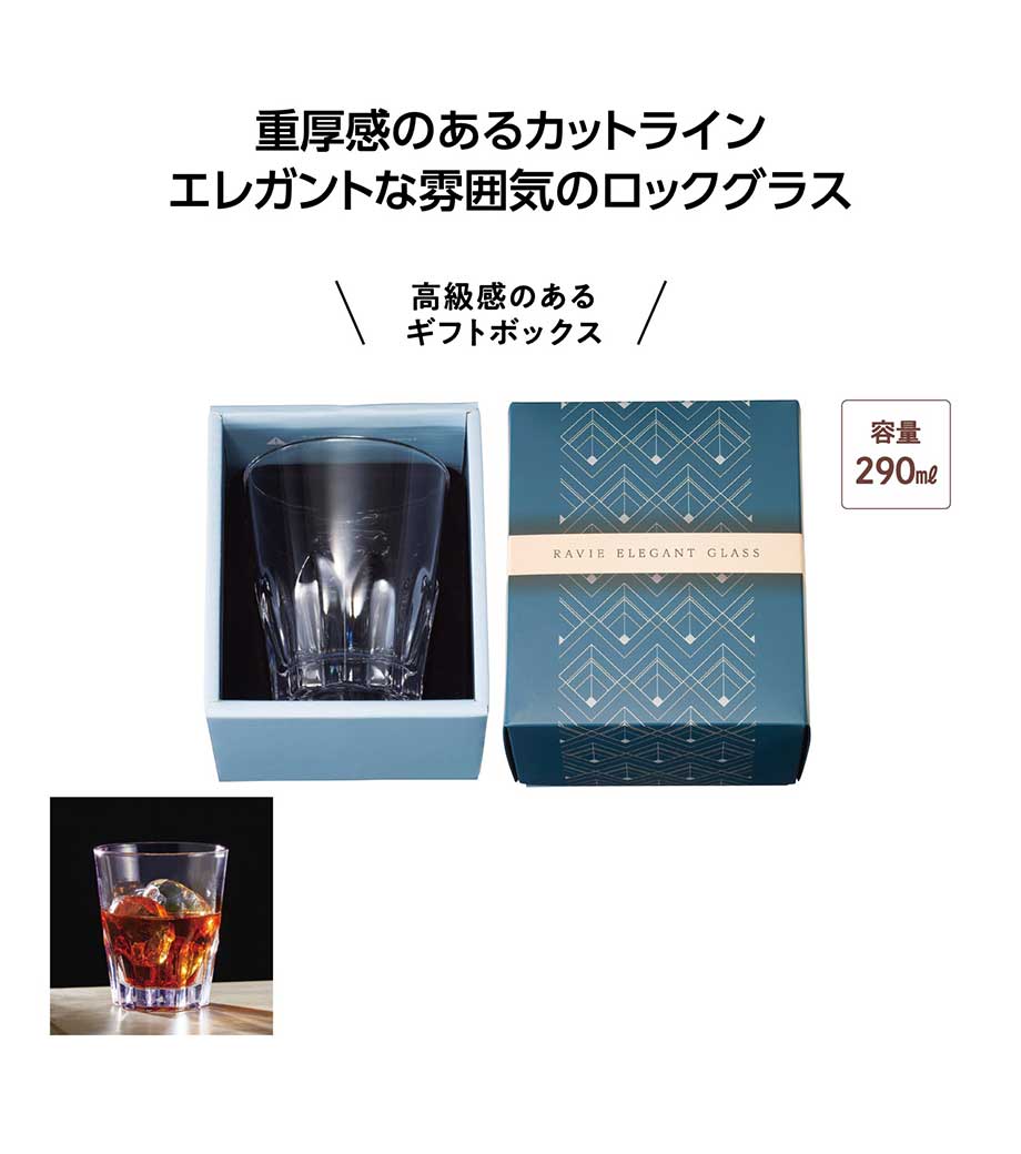 満水量235mlのオンザロックグラス。ウイスキーや焼酎、梅酒などにぴったり。手にしたときにずっしりと重厚感があり、提供するドリンクに高級感が出ます。安心の日本製でバーなど飲食店の業務用グラスに人気の商品です。