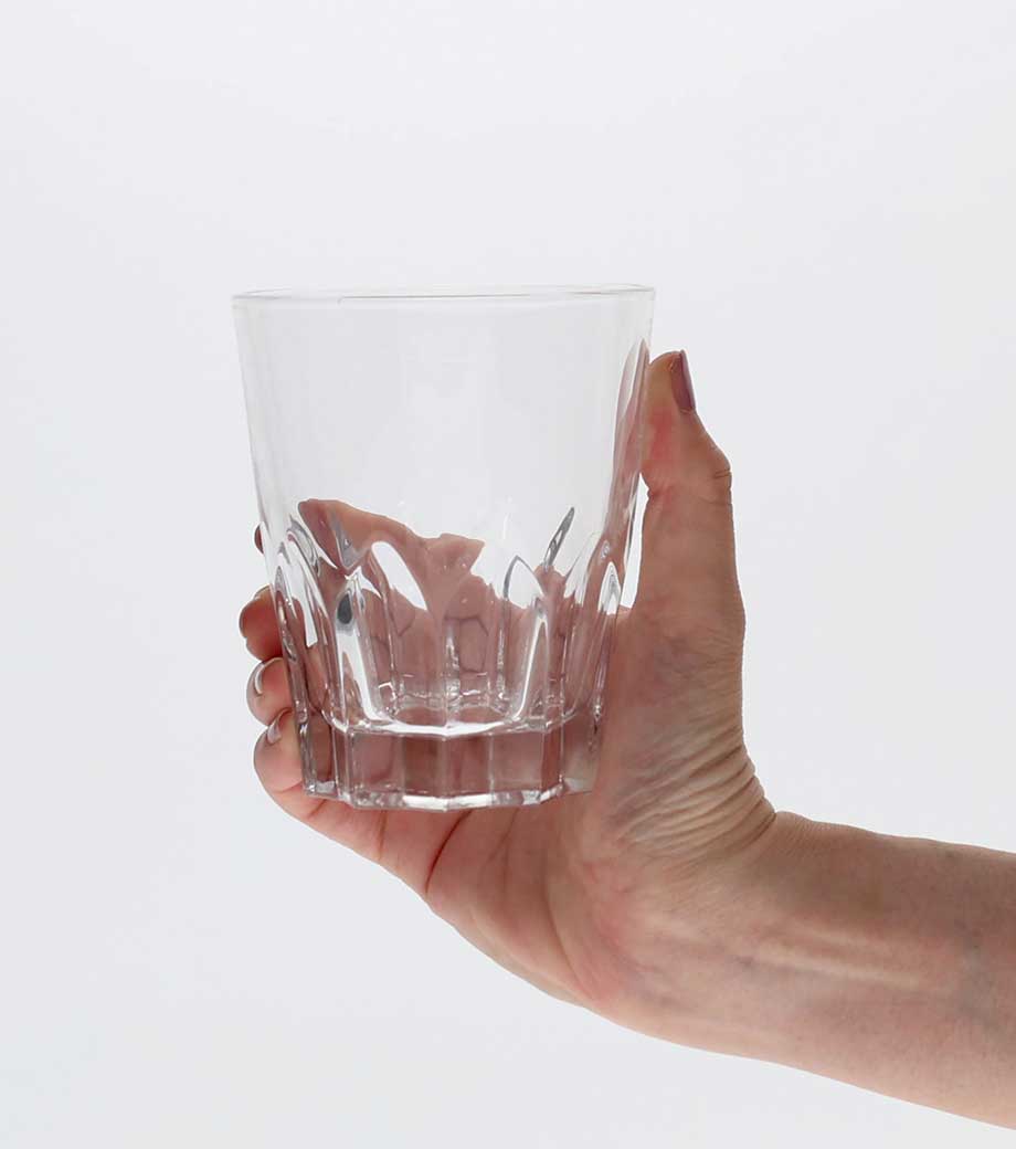 満水量315mlのオールド・ファッションド・グラス。大きめの氷がゆったり入る広口仕様です。ウイスキーのロックにはもちろん、焼酎やカクテルにもおすすめのサイズ。手にしたときに重厚感があり、提供するドリンクに高級感が出ますよ。安心の日本製でバーなど飲食店の業務用グラスに人気の商品です。
