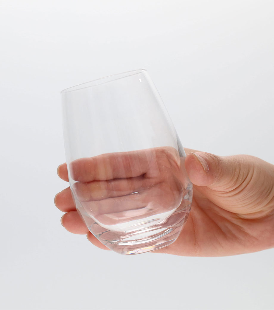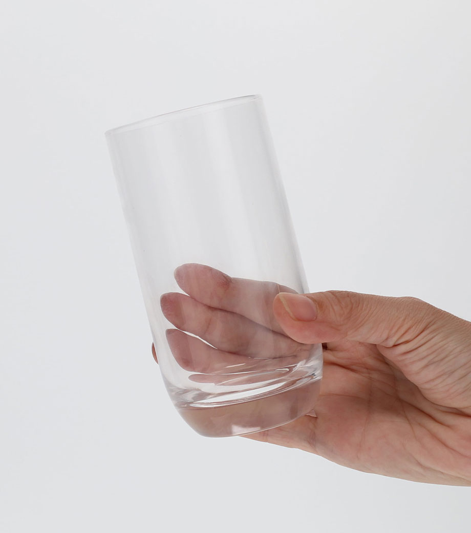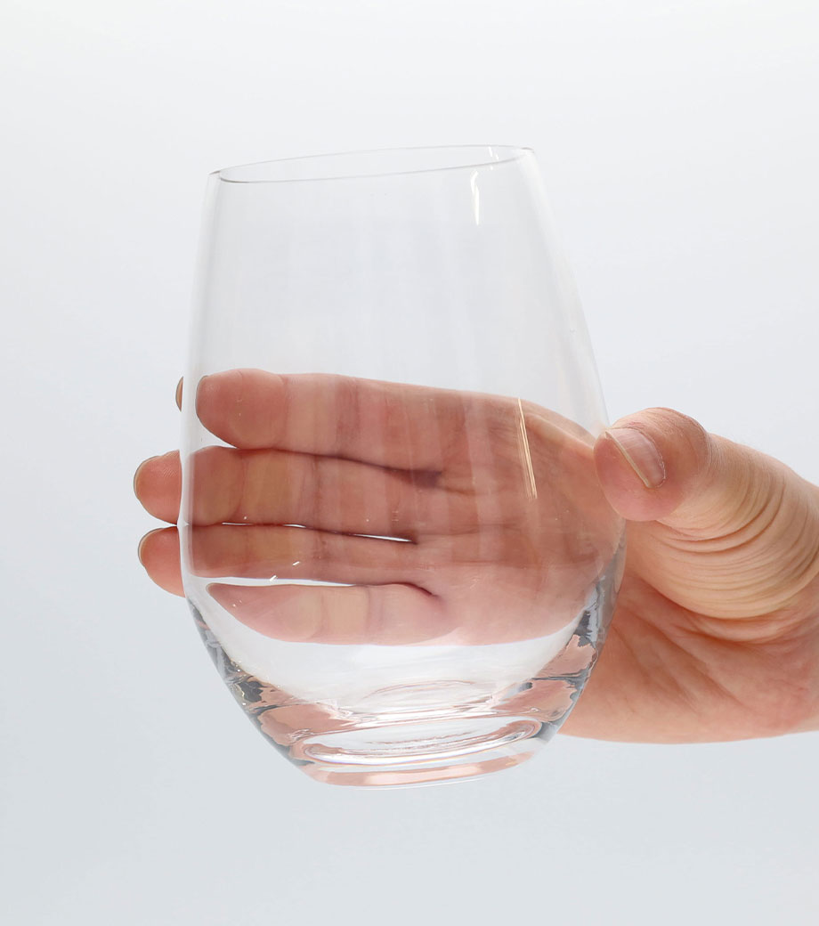 たっぷり容量約490mlのグラスです。コロンと丸いフォルムで大き目ながら手になじみやすい。ガラスが薄く軽やかなフォルムが特徴です。シンプルながら洗練されたデザインでグッドデザイン賞を受賞しています。