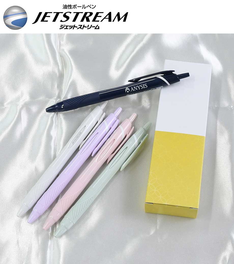 三菱鉛筆 ジェットストリーム 0.5mmは、油性とは思えないなめらかな書き心地がウリのボールペン。速乾性があり、一般的な油性インクよりも濃くしっかりとした字が書けるのも特徴です。いつでもどこでもサッと筆記できるノック式ボールペンは、年代性別問わずもらって嬉しいノベルティ。海外でも支持されている大人気商品です。