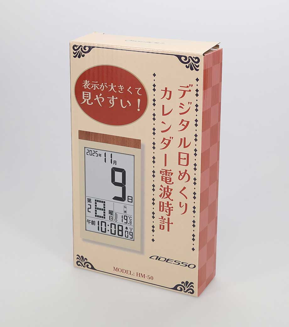 「デジタル日めくり電波時計」は、日付表示が大きくて見やすいデジタル電波時計。1色印刷が可能です。