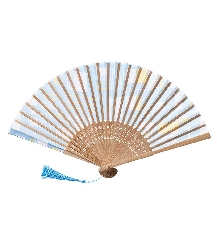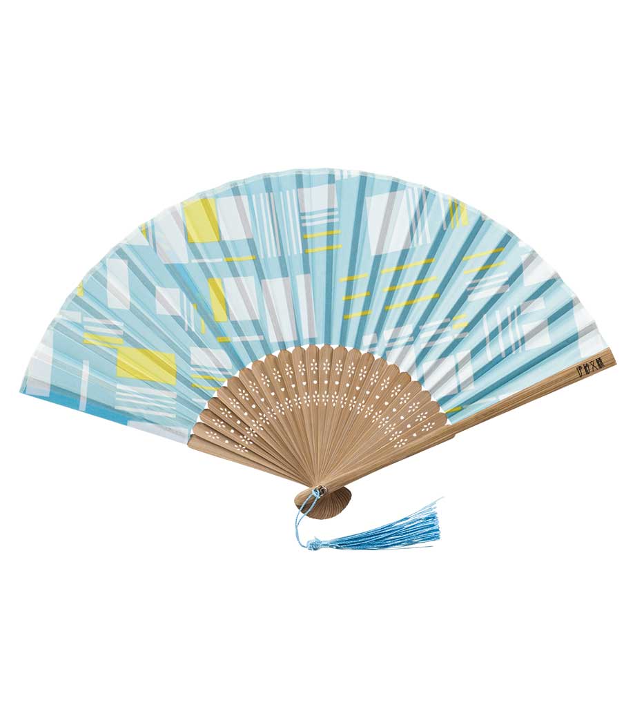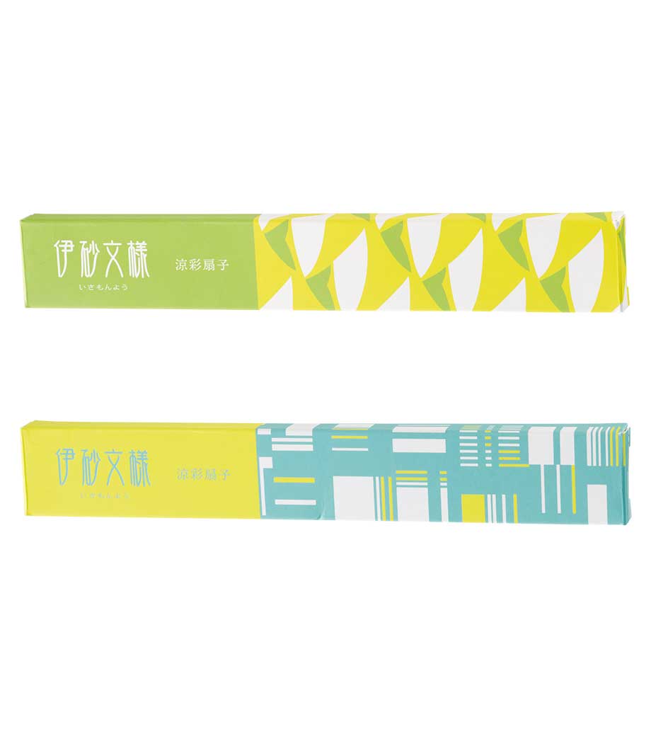 伝統的な型染技法の伊砂文様を現代的にアレンジした涼彩扇子です。幾何学的なテキスタイル調デザインで、世代を問わず使いやすいお洒落さが魅力。