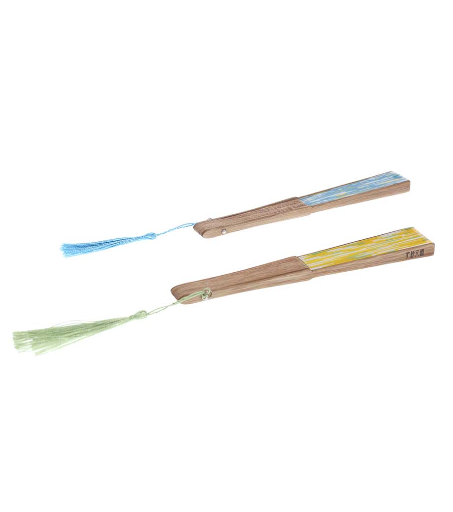 涼ブルー・彩イエローを2色取り混ぜてのお届けです。扇子は軽くかさばらず持ち歩きやすいので熱中症対策にもおすすめ。日本の伝統的なアイテムは外国人の方への贈り物にも大変人気があります。夏のイベントやキャンペーンにいかがでしょうか。