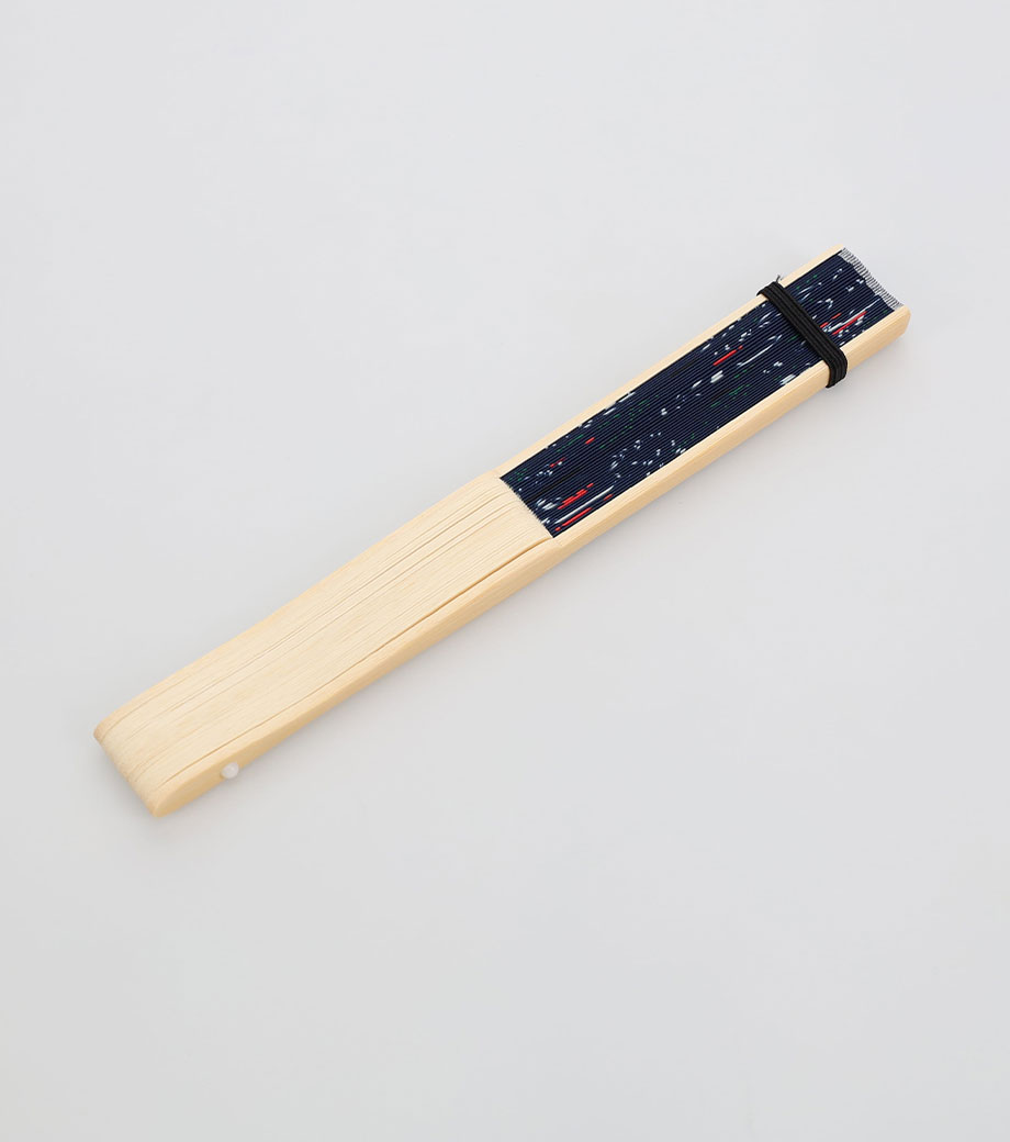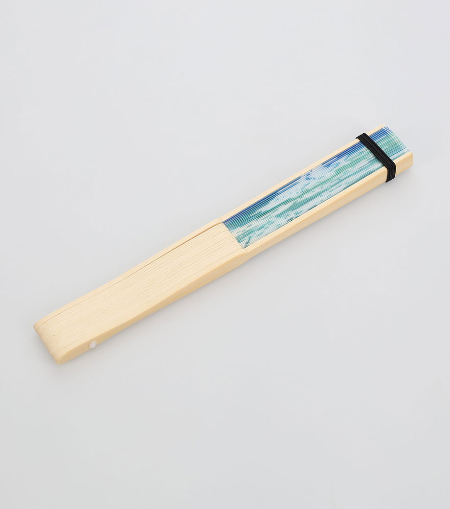 清流を泳ぐ鮎の姿を切り取ったような爽やかな扇子。骨組には清涼感のある白竹を使用し、青色の扇面と合わせ見た目も涼やかです。軽くてかさばらず、電気を使わないエコアイテム。ハンディファンのように稼働音もしないので、美術館や映画館でも周りに気を遣わず使用できます。
