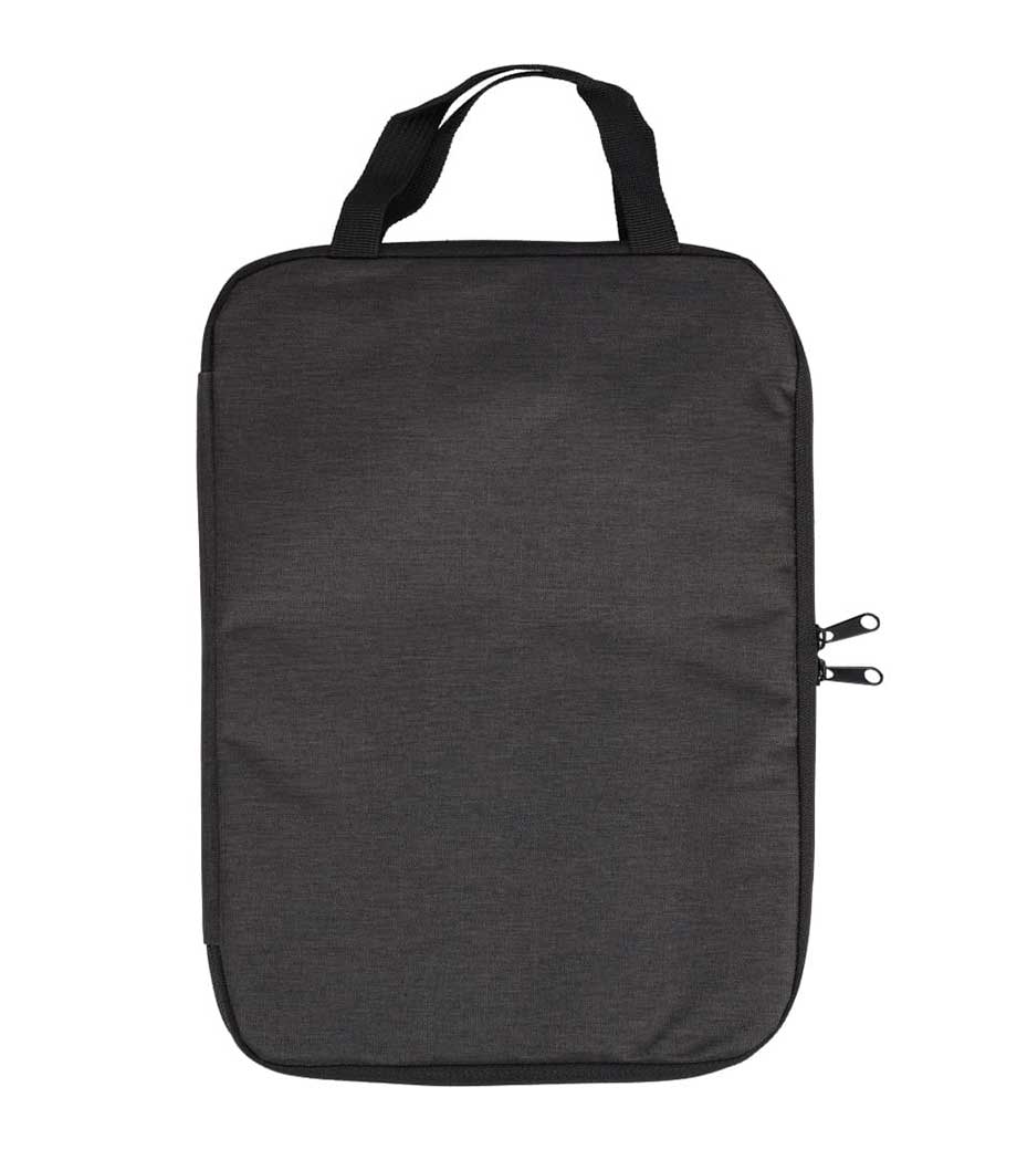 タブレットケースは、12.9インチまでのタブレットPCに対応。厚めのクッションが移動中の衝撃を吸収し、画面の保護に役立ちます。フラットな形状で大きな外ポケットが1つ。ダブルファスナーはL字で開閉可能なので、縦からでも横からでも出し入れ自在です。