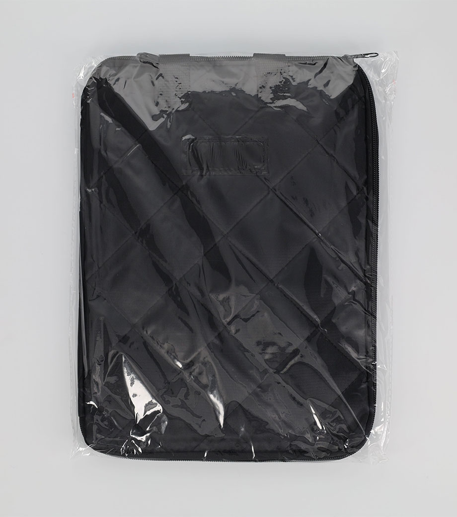 タテにしまえるPCバッグは、13インチのノートパソコンまで収納可能なPCバッグです。超軽量の約170g!厚めのクッションがPCを傷付けずに衝撃から守ってくれます。A4書類も縦にすっと入り、外側に1つポケット付きです。開閉に便利なダブルファスナーで出し入れもスムーズ。バッグインして使えるスリムな縦型は、ビジネスリュックにもインしやすくかさばらずに最適です。ブラックとグレーの色合いはどんなスタイルにもピッタリですね。
