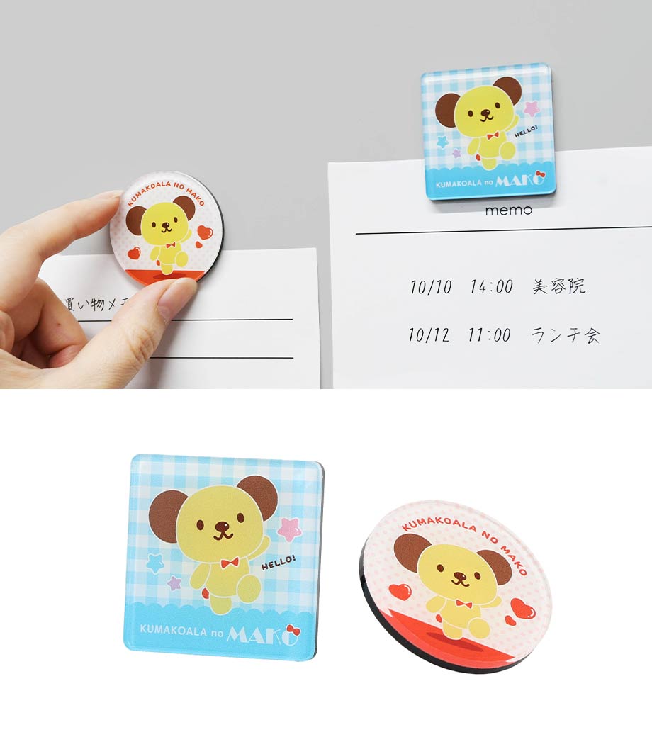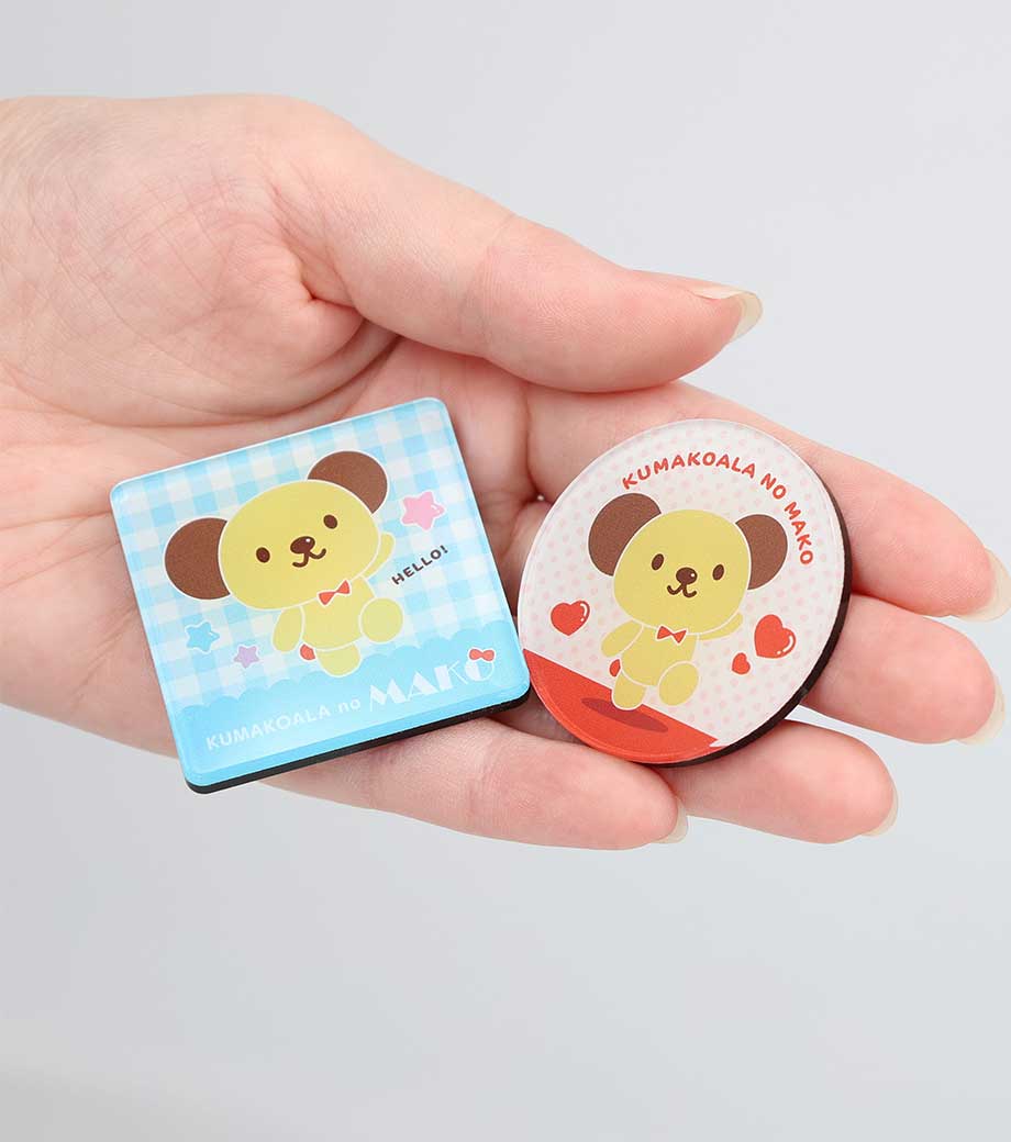 厚みのあるアクリル素材の透明感が魅力のマグネットです。イラストや写真をフルカラーで印刷でき、お手頃価格でオリジナルグッズが作成できます。しっかりくっつくネオジウム磁石で、実用性も抜群です。