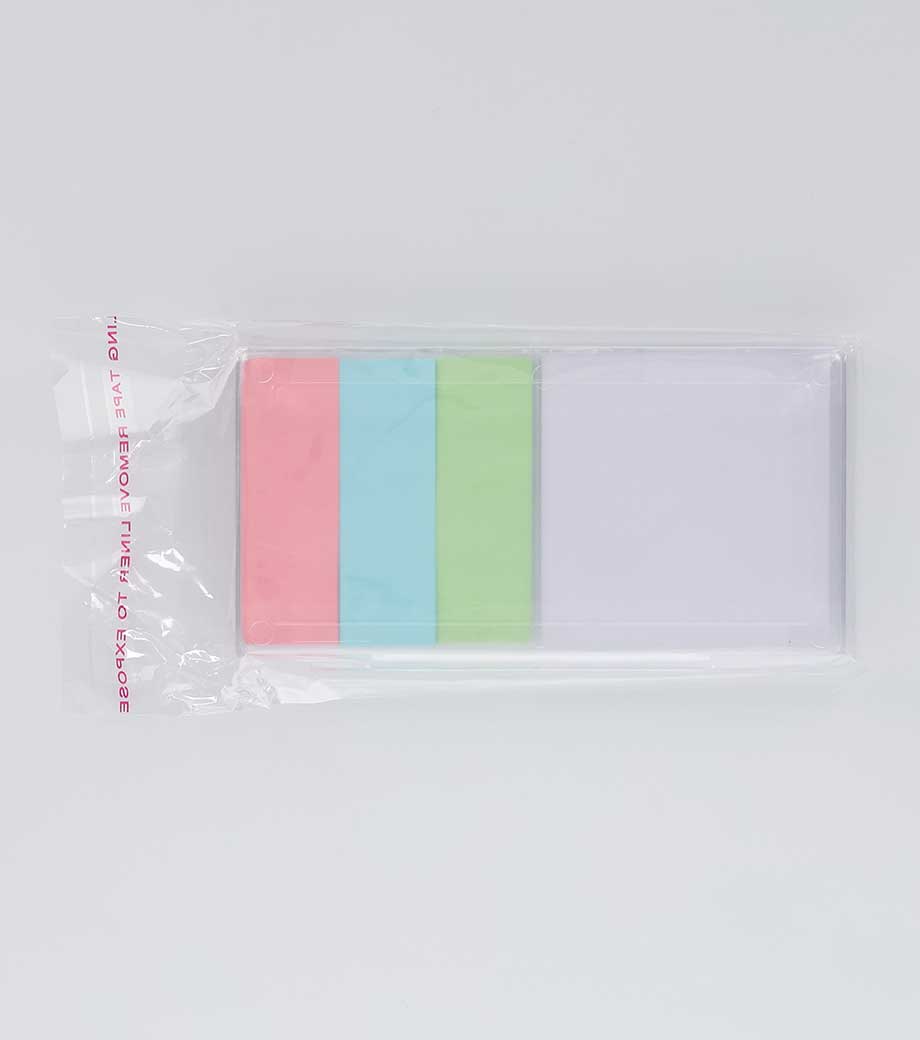 パステルフィルム付箋は、5色の付箋フィルムを各20枚入りにしたセット。文字の上に貼っても、下の文字が透けて見える便利な透明タイプです。