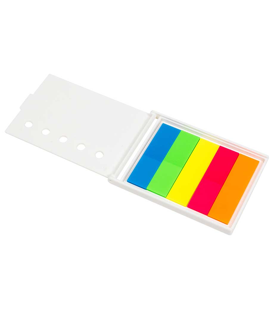 5色ふせんセットは、用途によって使い分けられる5色のふせん&ケースのセット。1つあると、いろいろ使えて便利です。ふせんケースの絵柄は、フルカラー印刷でオリジナルデザインが可能。白地に鮮やなカラーが映えます。