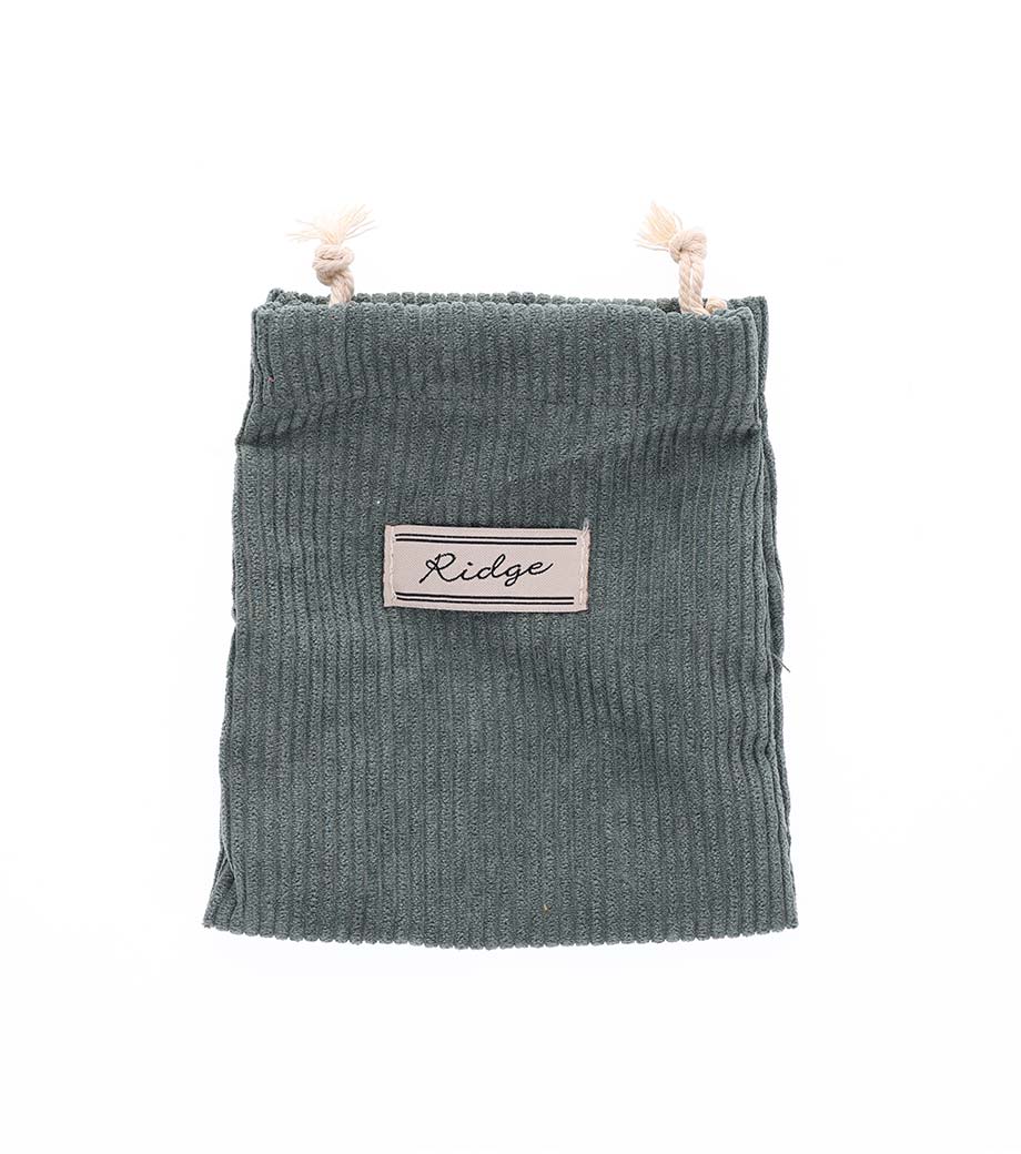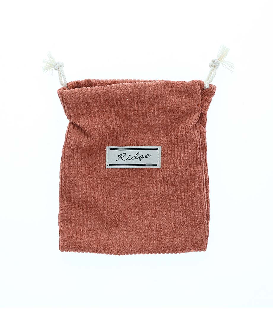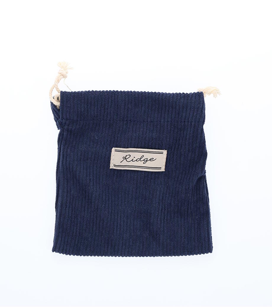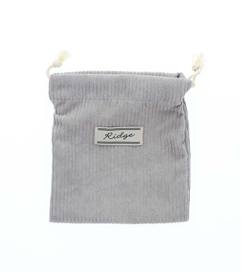 ベーシックで使いやすい5オンスの厚手コットン巾着。マチなしでちょっとしたガジェット入れや、詰め合わせギフト用袋にぴったりです。紐部分は共生地を使用。高級感のある印象です。