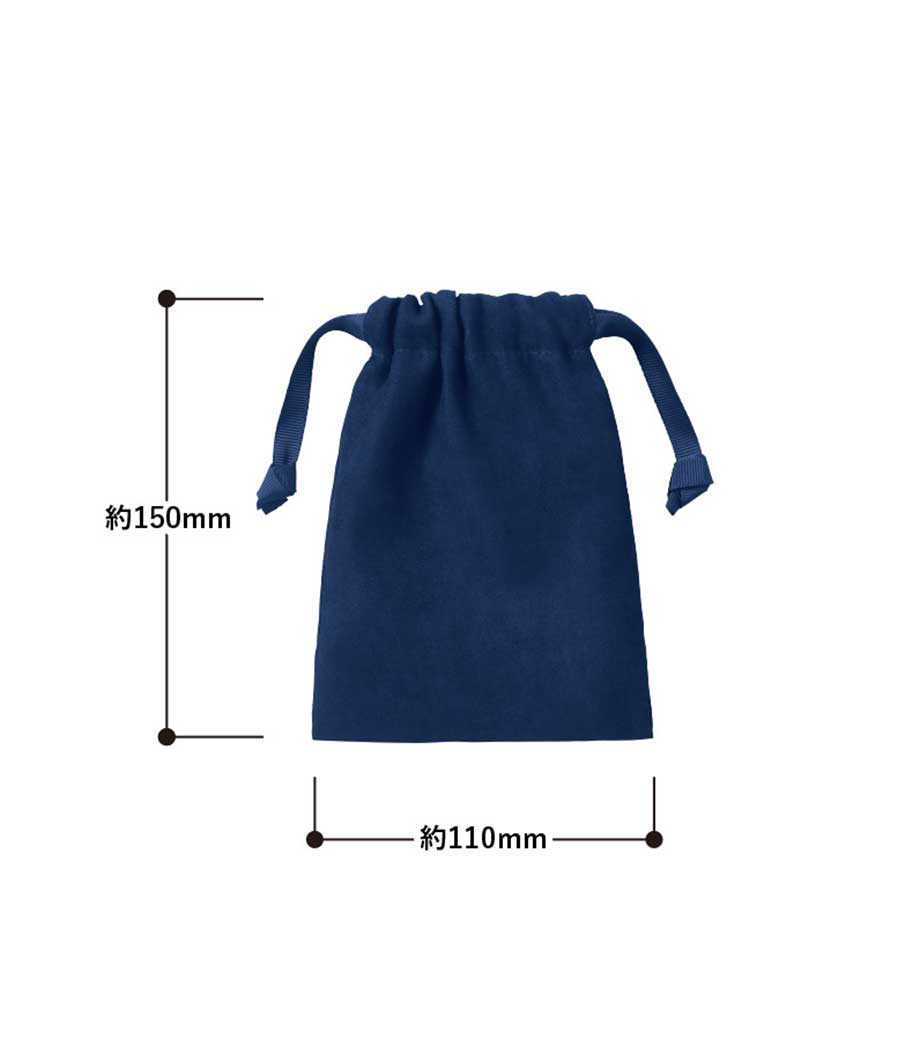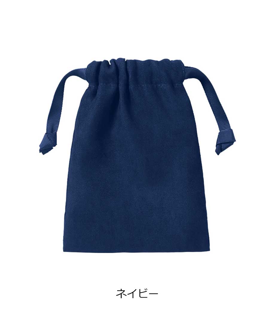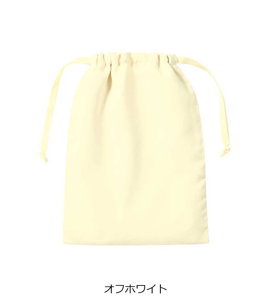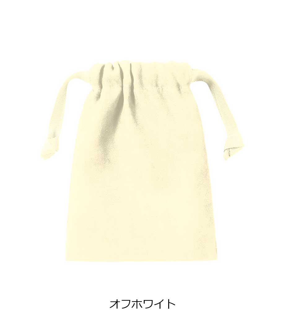 ベーシックで使いやすい5オンスの厚手コットン巾着。マチなしでちょっとしたガジェット入れや、詰め合わせギフト用袋にぴったりです。紐部分は共生地を使用。高級感のある印象です。1色ロゴ印刷でオリジナル巾着を製作できます。コスメショップの周年記念や購入特典など、貰って嬉しいノベルティです。