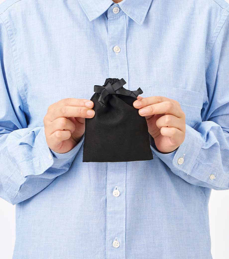 コスメやアクセサリーが入るミニサイズの巾着袋は、配布後も普段使いしやすく、女性向けノベルティの定番です。ロゴをワンポイントでプリントすれば、スタイリッシュに仕上がります。