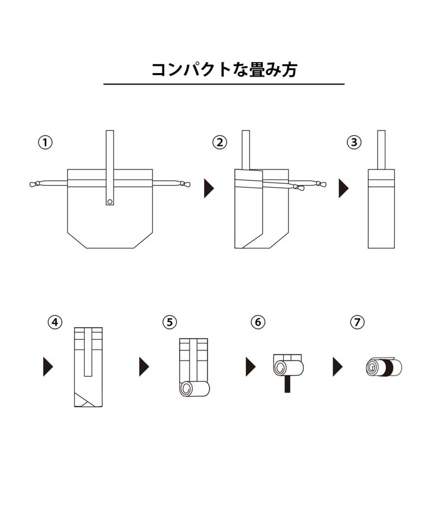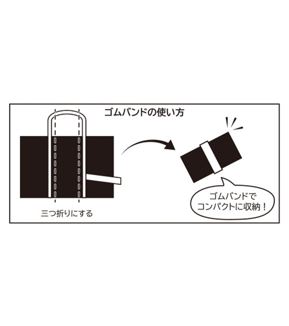 バッグ本体はスッキリとコンパクトに折り畳むことができ、面ファスナーで留めるだけのお手軽さ!普段使うバッグに忍ばせておけばいつでもさっと取り出せます。