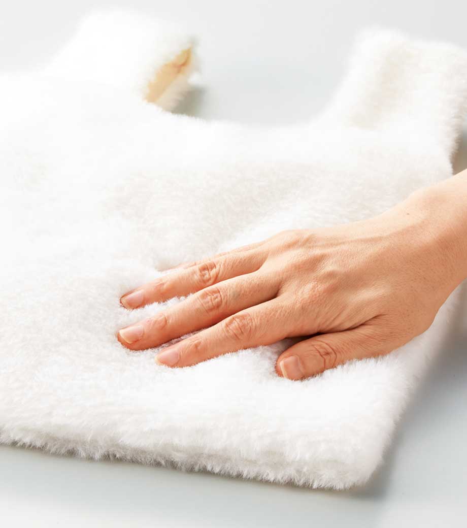 コンパクトに折りたたんで携帯できるので急に荷物が増えたときも安心。しっとりなめらかな触り心地の生地は、シワが戻りやすいこだわりの素材を使用しています。