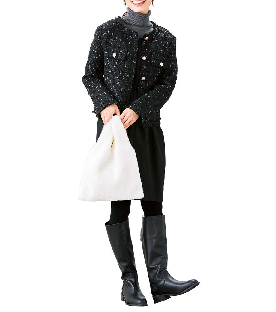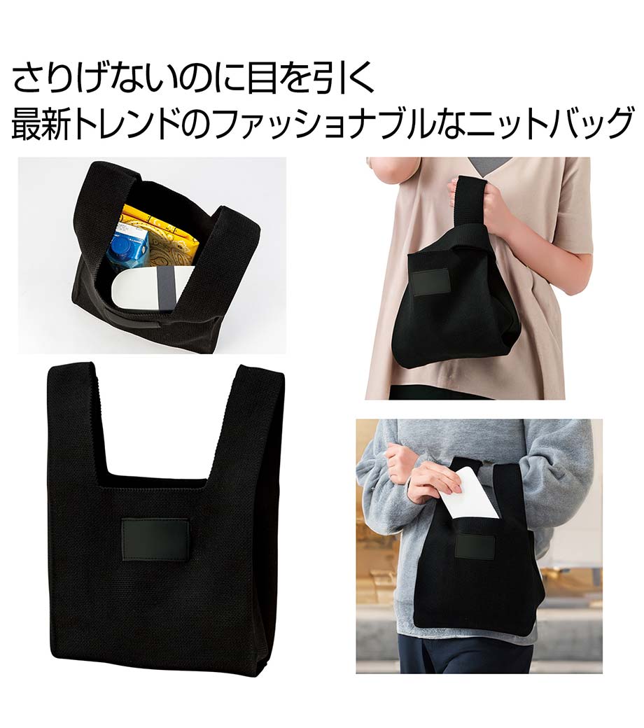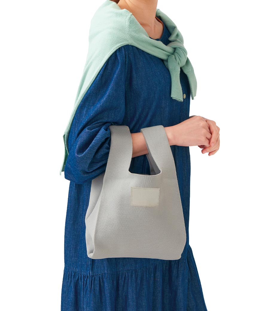 こなれ感を演出できるおしゃれなトートバッグです。あたたかみのある厚手のしっかりした生地なので、秋冬のお出かけバッグにぴったり!伸縮性のあるニット生地と横マチで、見た目以上に収納力があります。スマホやお財布など必要最低限の荷物はもちろん、ランチボックスや500mlペットボトルを入れるのにもちょうどいいサイズ感です。