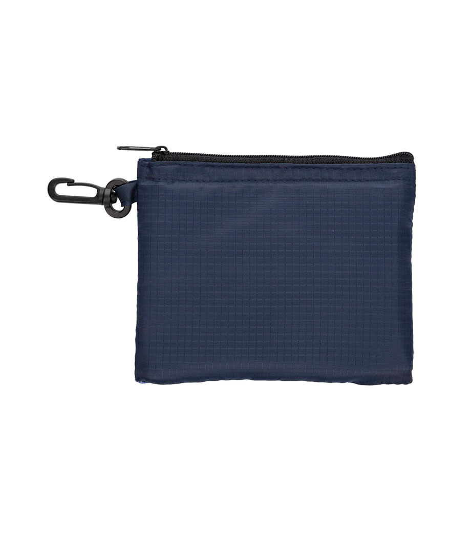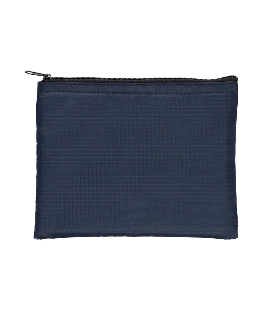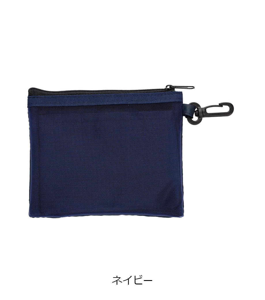 ポーチの色はネイビーなので、白など明るい色で名入れをすると、ロゴや社名がとても映えますよ。