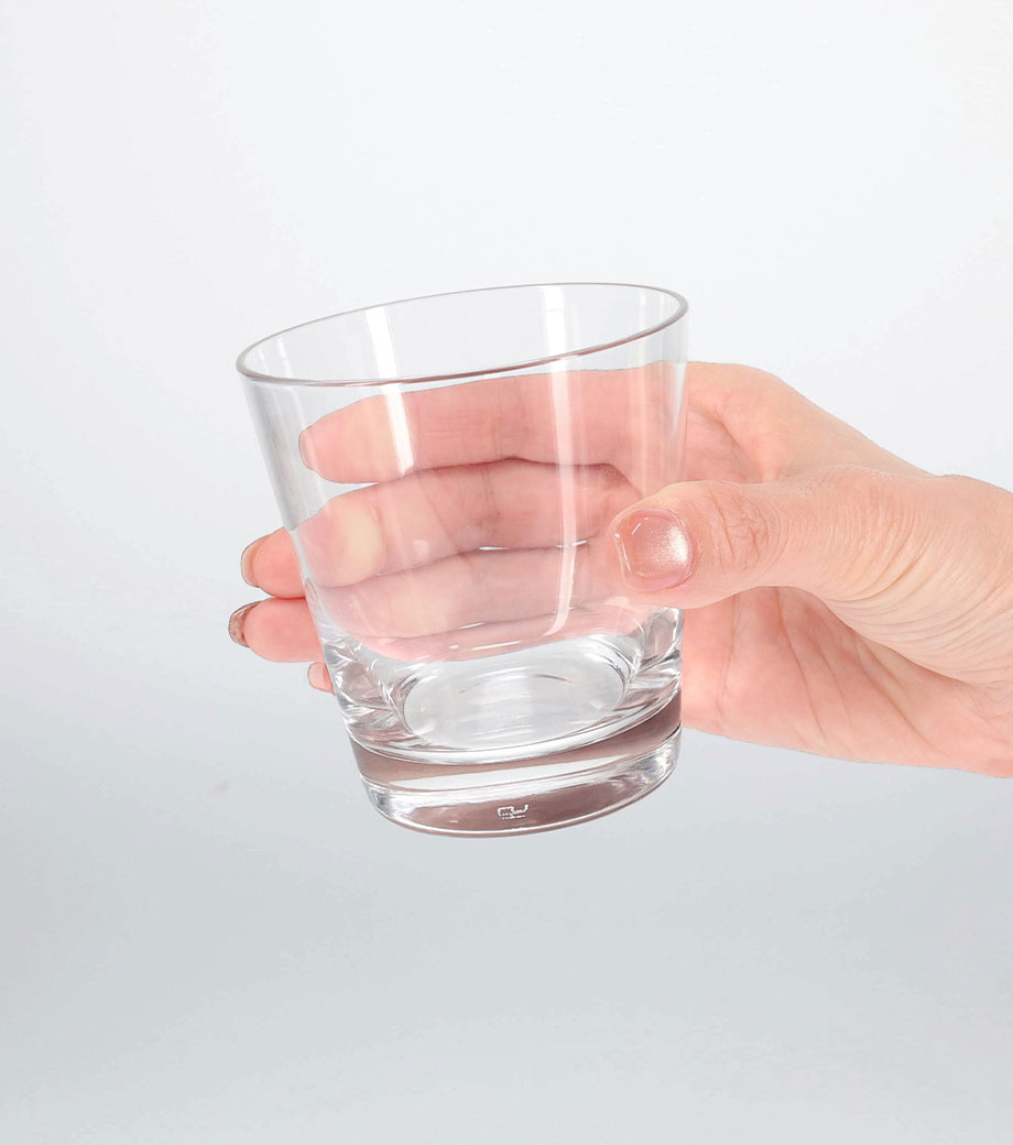 コロンとした形が手になじんで持ちやすいグラスです。容量はちょっと小ぶりサイズの約275ml。飲みきりにちょうどよい大きさです。お水やカクテルなど、様々な用途でお使いいただけます。