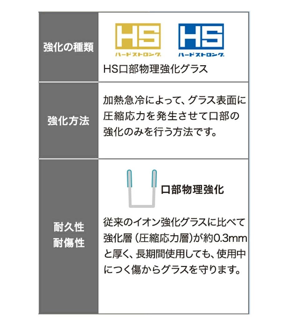 強化ガラス使用で耐久性アップ