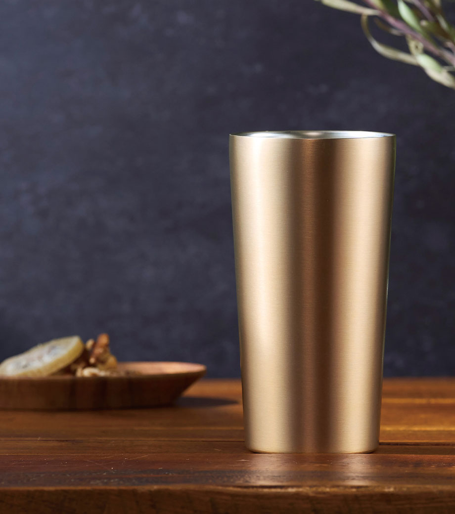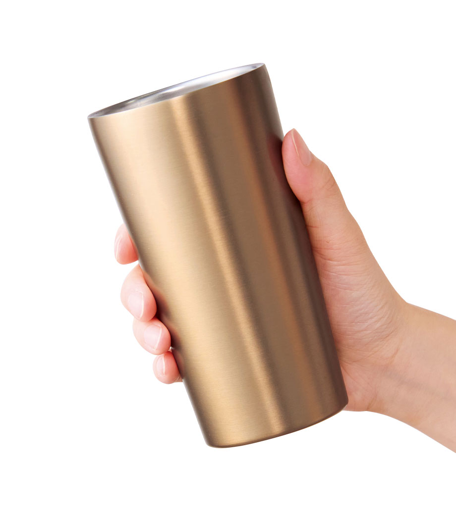 ステンレスサーモタンブラー450mlは洗いやすく、食器棚にしまいやすいシンプルな形状と、真空二重構造による保冷保温の機能性の高さで人気のアイテム。「タンブラー」といえばシルバーという定番色に、上品なシャンパンゴールドのカラーバリエーションを追加しました。ペアセットの提案にもおすすめ。