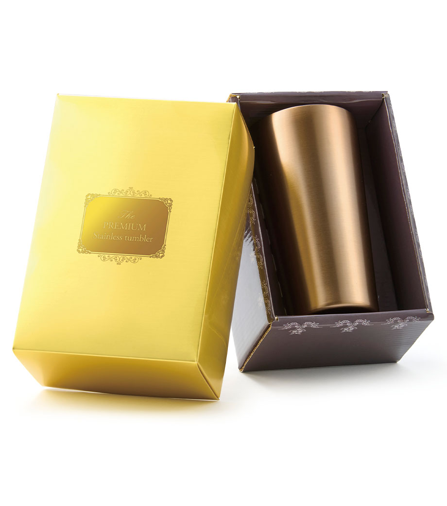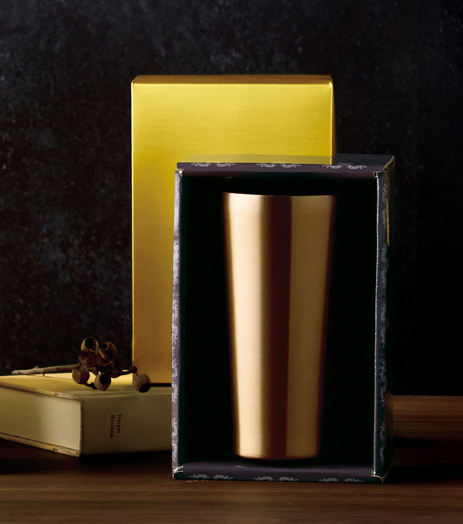 金色のタンブラーは軽くて丈夫なアルミ製、アイスストーンは保冷効果がある大理石を使用しています。輝く金色がとても目を惹き、目新しさがノベルティにぴったり!住宅展示の来場記念や車の試乗プレゼントなどに選ばれているタンブラーセットです。