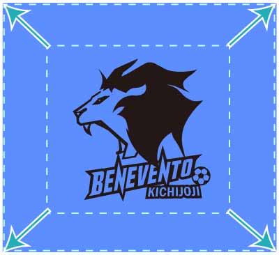 印刷範囲に対して大きさが足りていないロゴデータの場合、ロゴのサイズを変えず周りの青色を使って背景を拡張します。