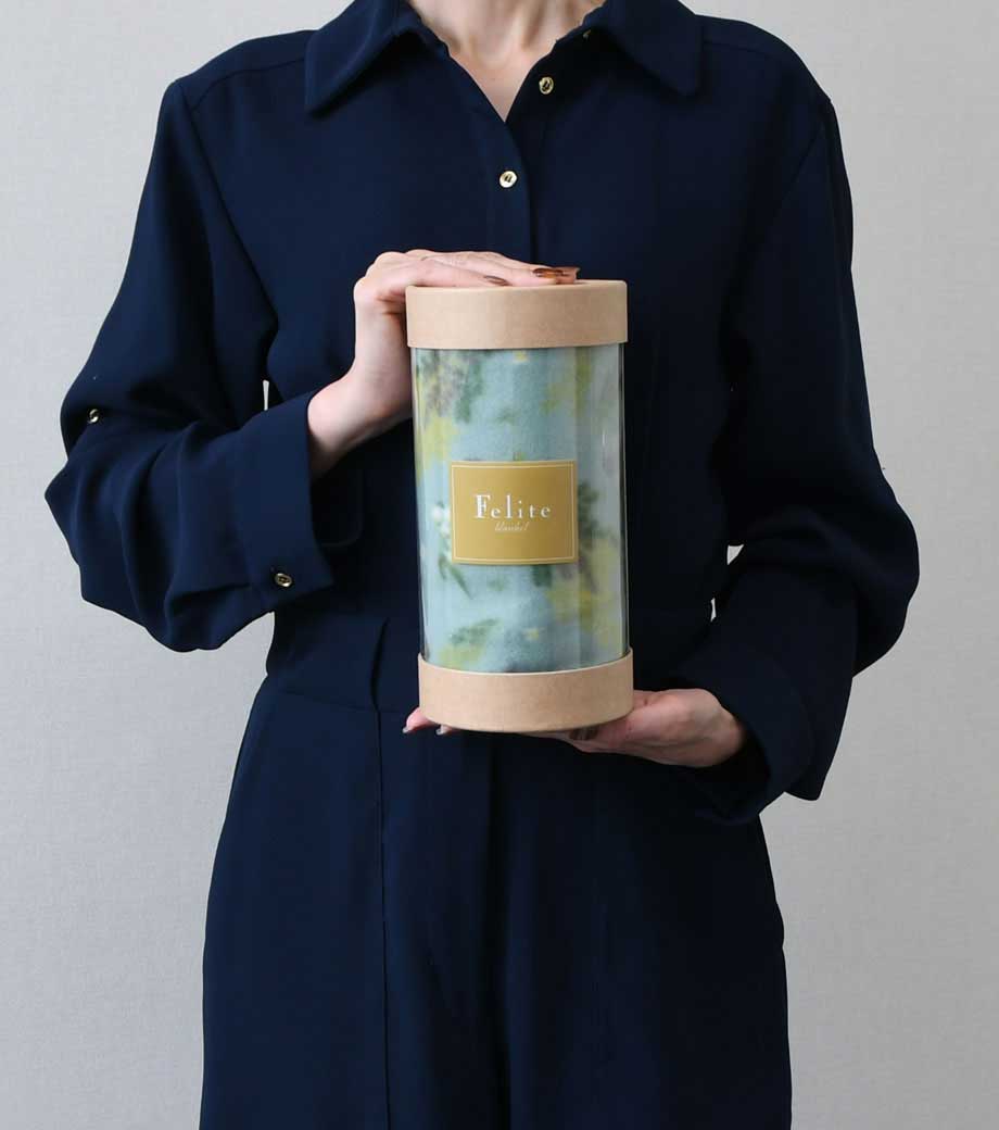 おしゃれで高級感溢れる箱入りブランケットです。大人が肩に掛けても余裕のあるサイズ感で防寒アイテムとして活躍します。ふんわり柔らかで触り心地抜群!