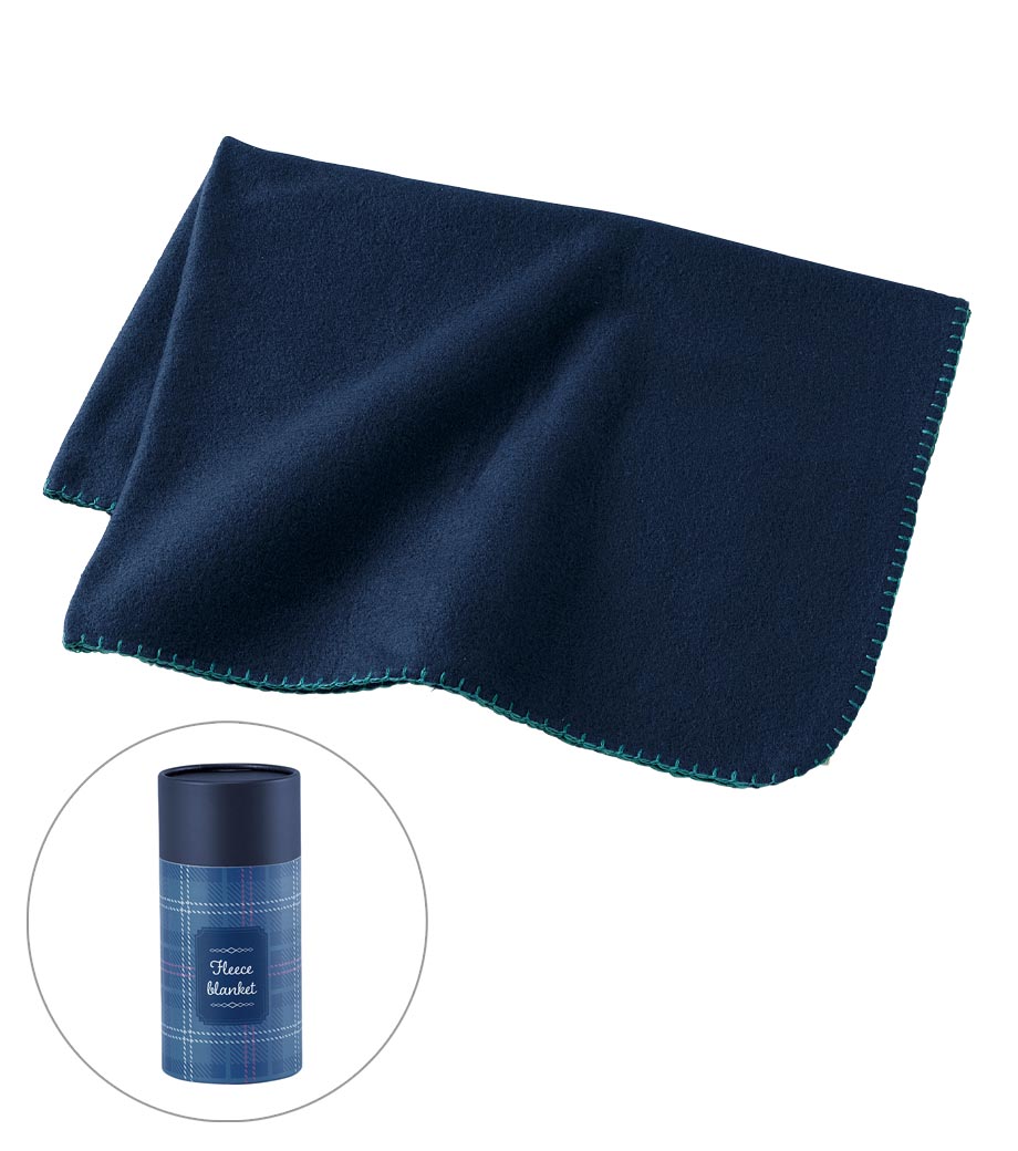 落ち着いた色合いの3色展開に、シルク印刷で名入れを入れてオリジナルグッズに。大きめのブランケットは喜ばれるノベルティですね。