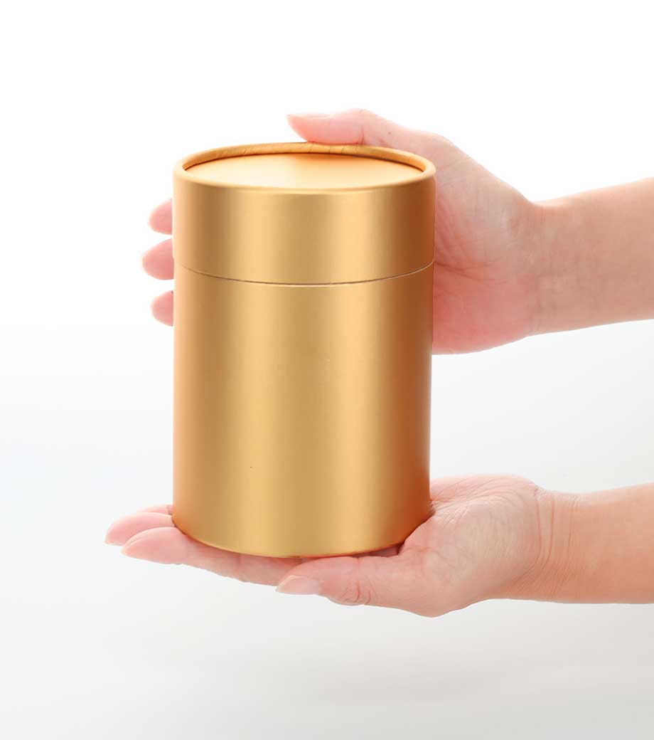 くすみカラーの筒型パッケージ